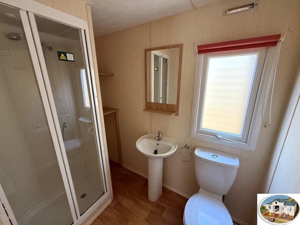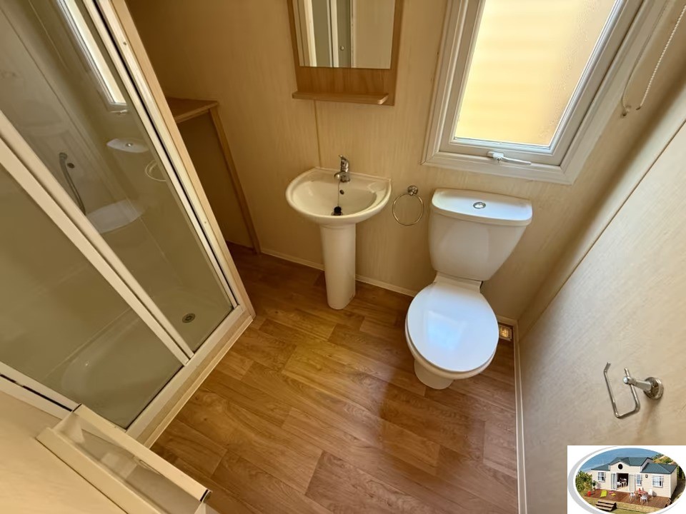 – La salle de bains dispose d’une douche, d’un lavabo et de toilettes.