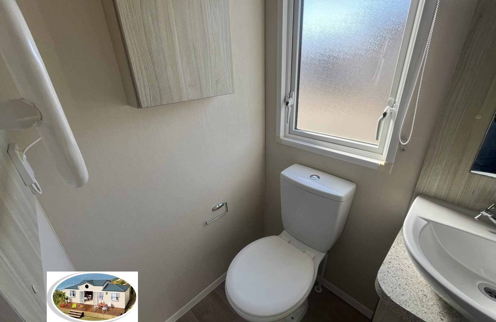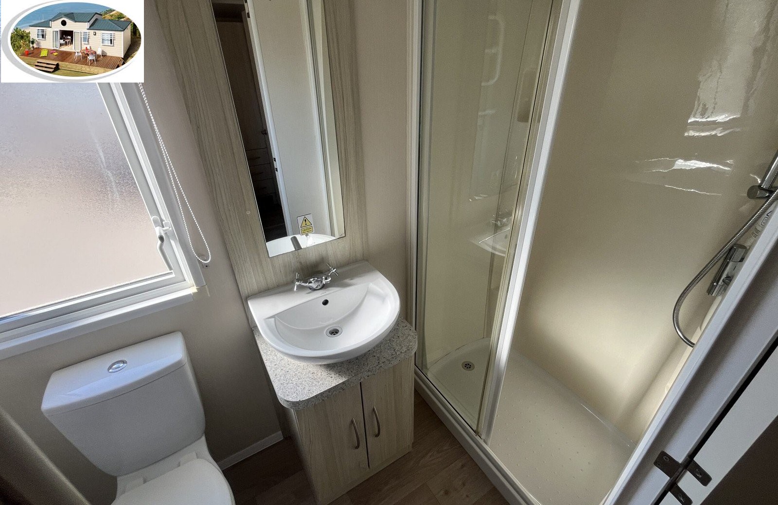La salle de bains est équipée d’une douche moderne, d’un lavabo et de toilettes. Une nouvelle chaudière assure un approvisionnement fiable en eau chaude.